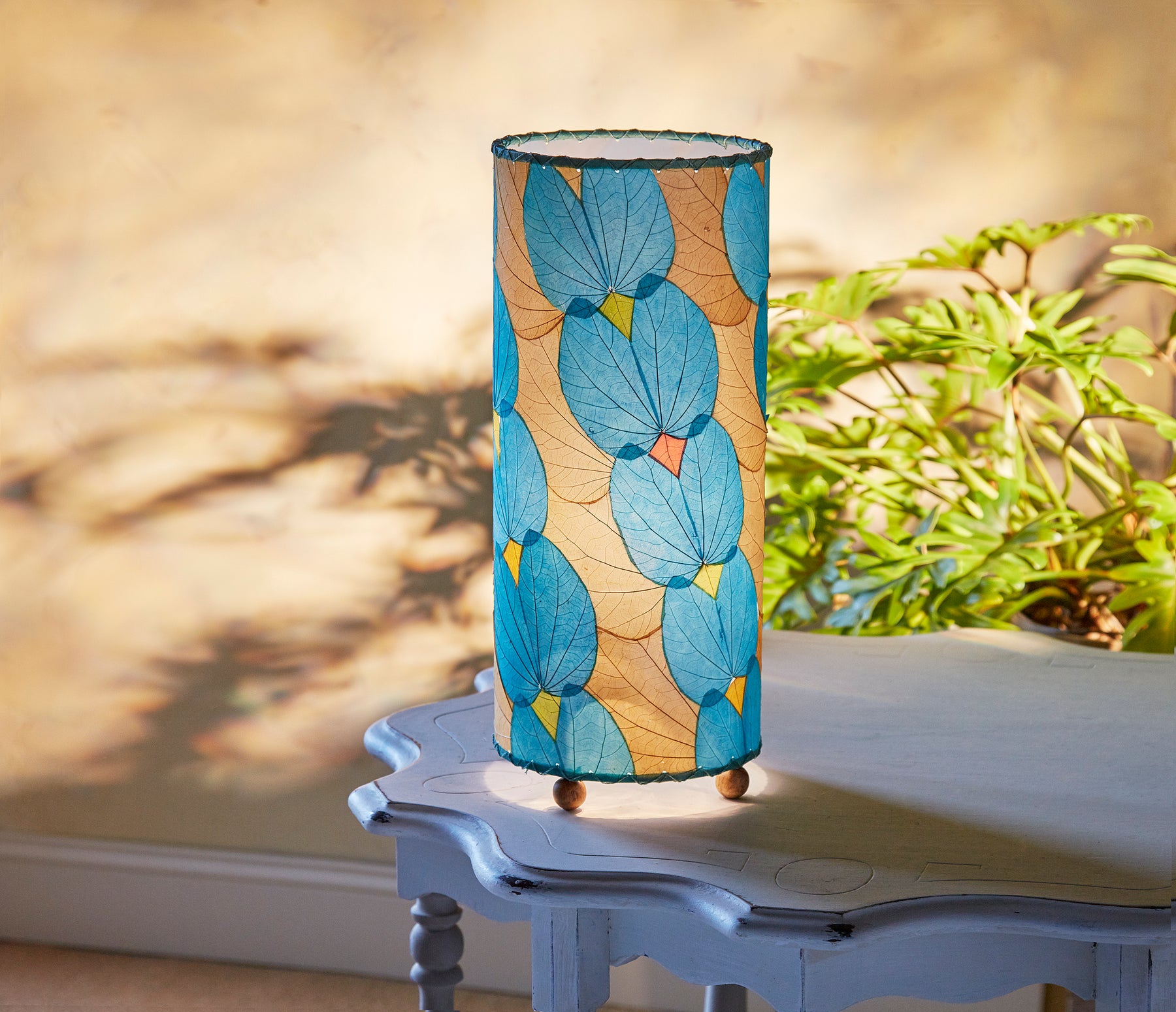 The Butterfly Series table lamp highlights the striking alibangbang (known as 'butterfly') leaves by alternating between rows of colorfully dyed and natural leaves. The resulting two-toned finish adds a splash of color and personality to its surroundings while still providing upward lighting through its open. Indoor rated. Bulb: A19 Medium Base, Max 13-Watt Type SBCFL or LED (no incandescent bulbs). Size: 7" dia. x 17" tall. Eco-friendly & fair trade home good handcrafted in the Philippines.