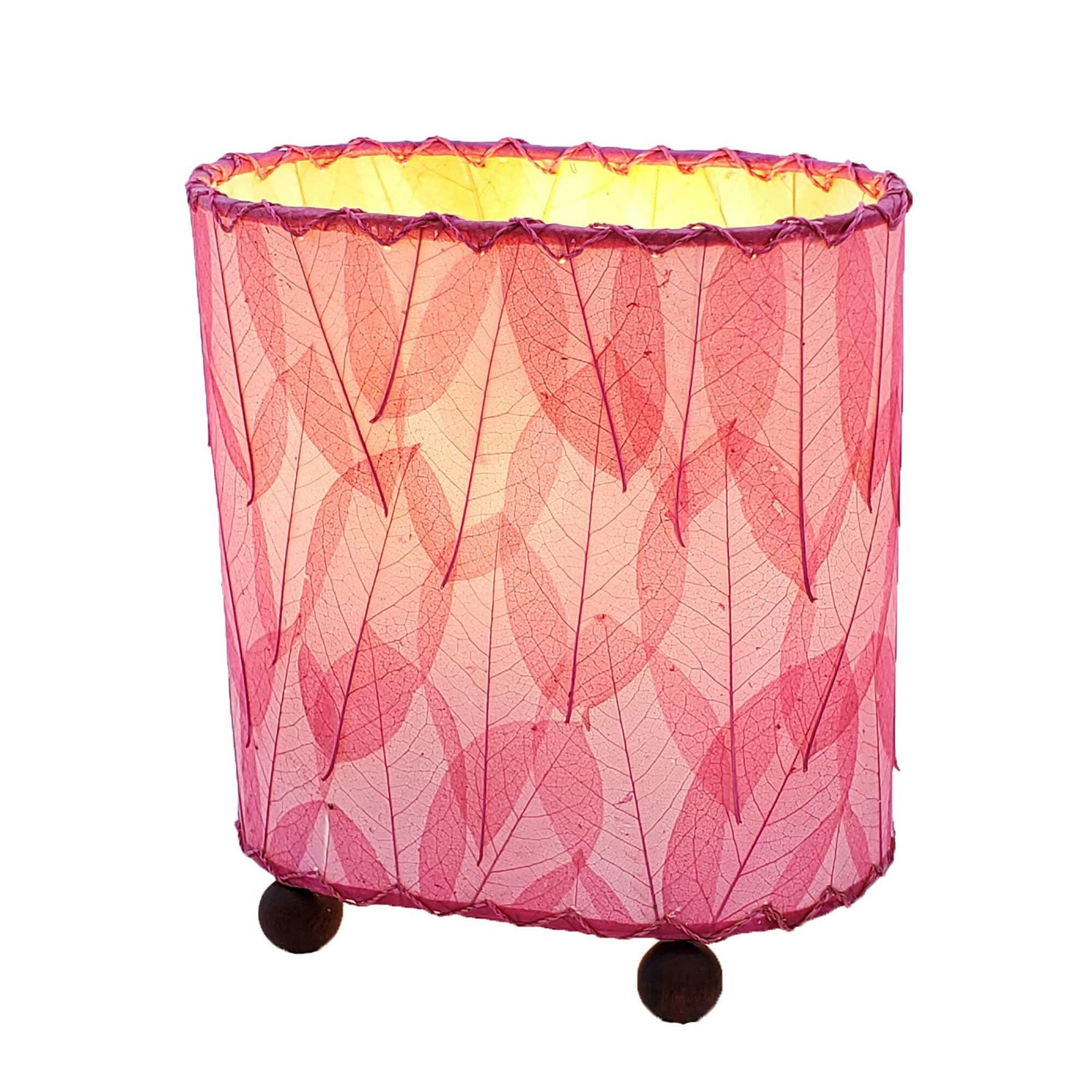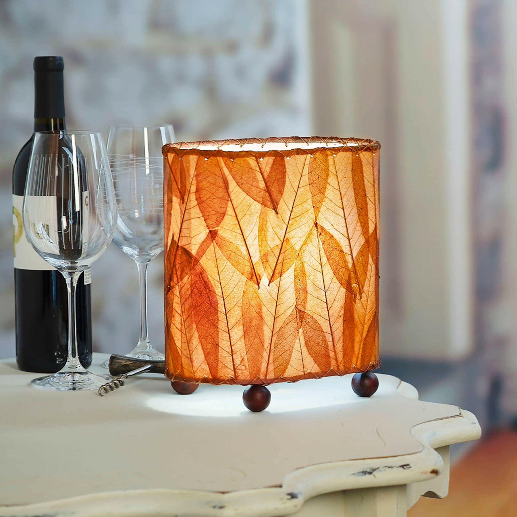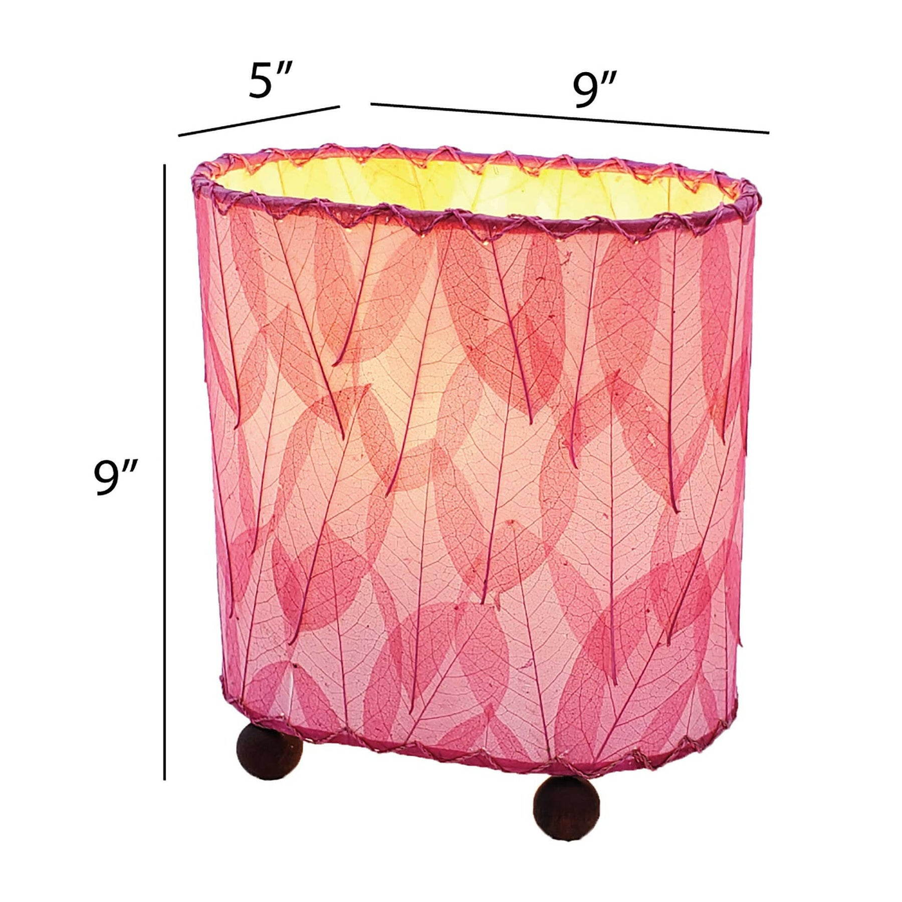 Small in scale but generous in light, this artisan lamp uses an elegant oval silhouette to cast warm, ambient illumination ideal for living rooms, bedside tables, or cozy corners. The exterior showcases overlapping, hand-placed guyabano leaves that create a natural, textured surface, while the upper interior of the shade is finished with fossilized cocoa leaves for a refined, high-quality look.