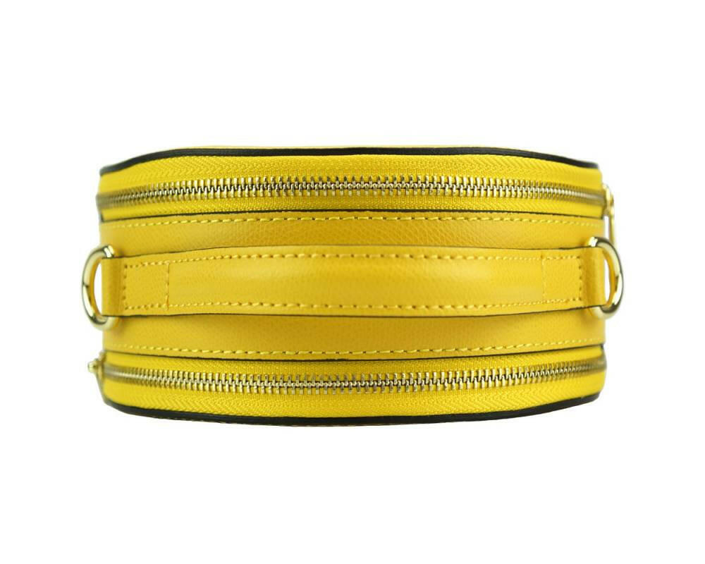 Authentic Florence designer handcrafted leather small canteen-shaped bag. The functional elements give the bag a refined note of elegance, while the particular capacity and two separate compartments turn it into a must-have for every day use. Dimensions: 7" diameter x 2.7" deep. Made in Italy.