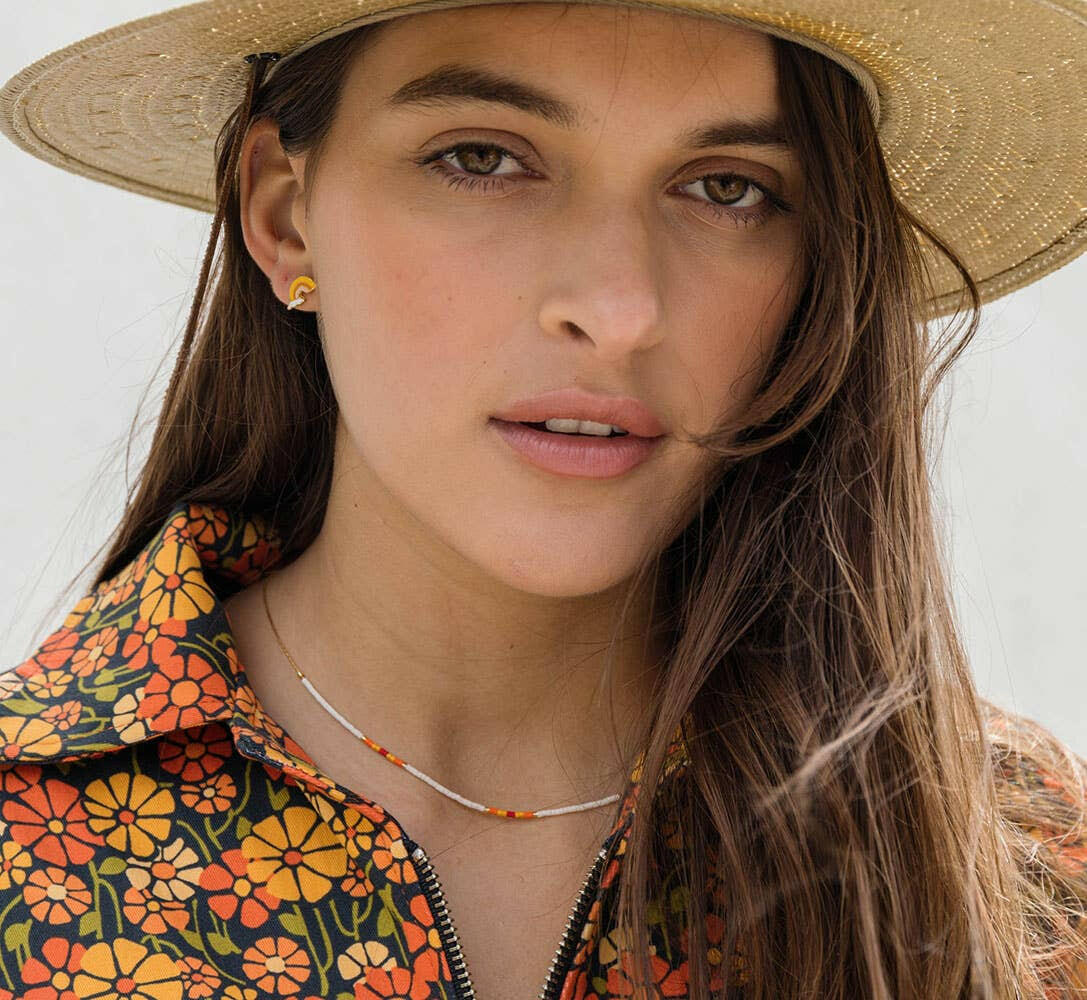 Made in Seoul, South Korea, with the world‑famous Miyuki Japanese seed beads, these handmade necklaces are a spring and summertime favorite. Strung on a barley chain and finished with 14k gold plating on brass, each piece pairs finely detailed beadwork with everyday wearability and effortless layering.