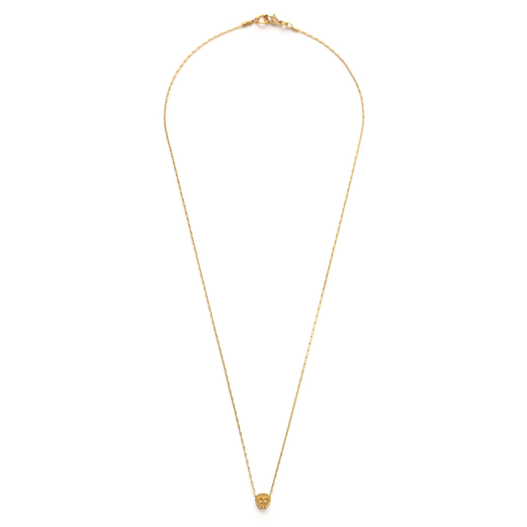 Tiny Skull 1/4" on 18" barley chain. 14k gold over brass. Designed and assembled in California.